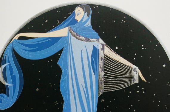 Erte Matted Print 1987 Twilight Starry Night Sky Moon Lady In Etsy